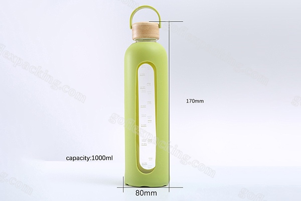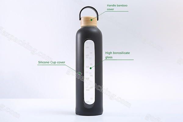 DescriptionPortable glass bottle with bamboo cover and silicone cover