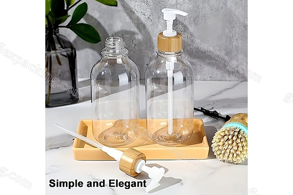 Merge sustainability with style! Our clear plastic bottle showcases your product, while the bamboo lotion pump adds a natural, eco-chic touch. Perfect for lotions, hand soaps, and sanitizers. Durable, lightweight, and ideal for eco-conscious brands.