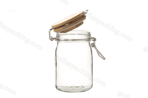 | Description | Glass storage jar with clip bamboo lid for honey, food etc |