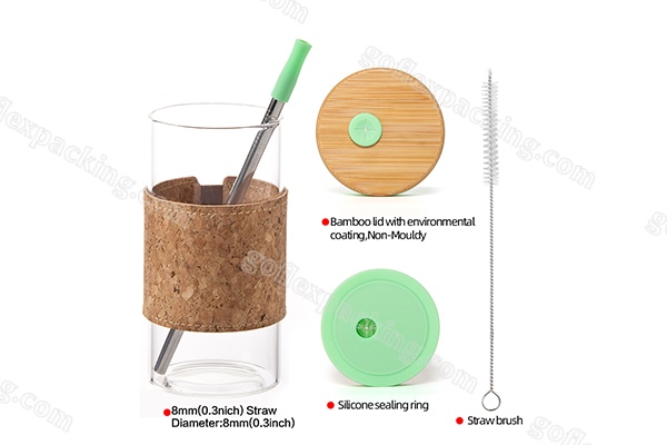 DescriptionSingle layer glass straw cup(cork sleeve)